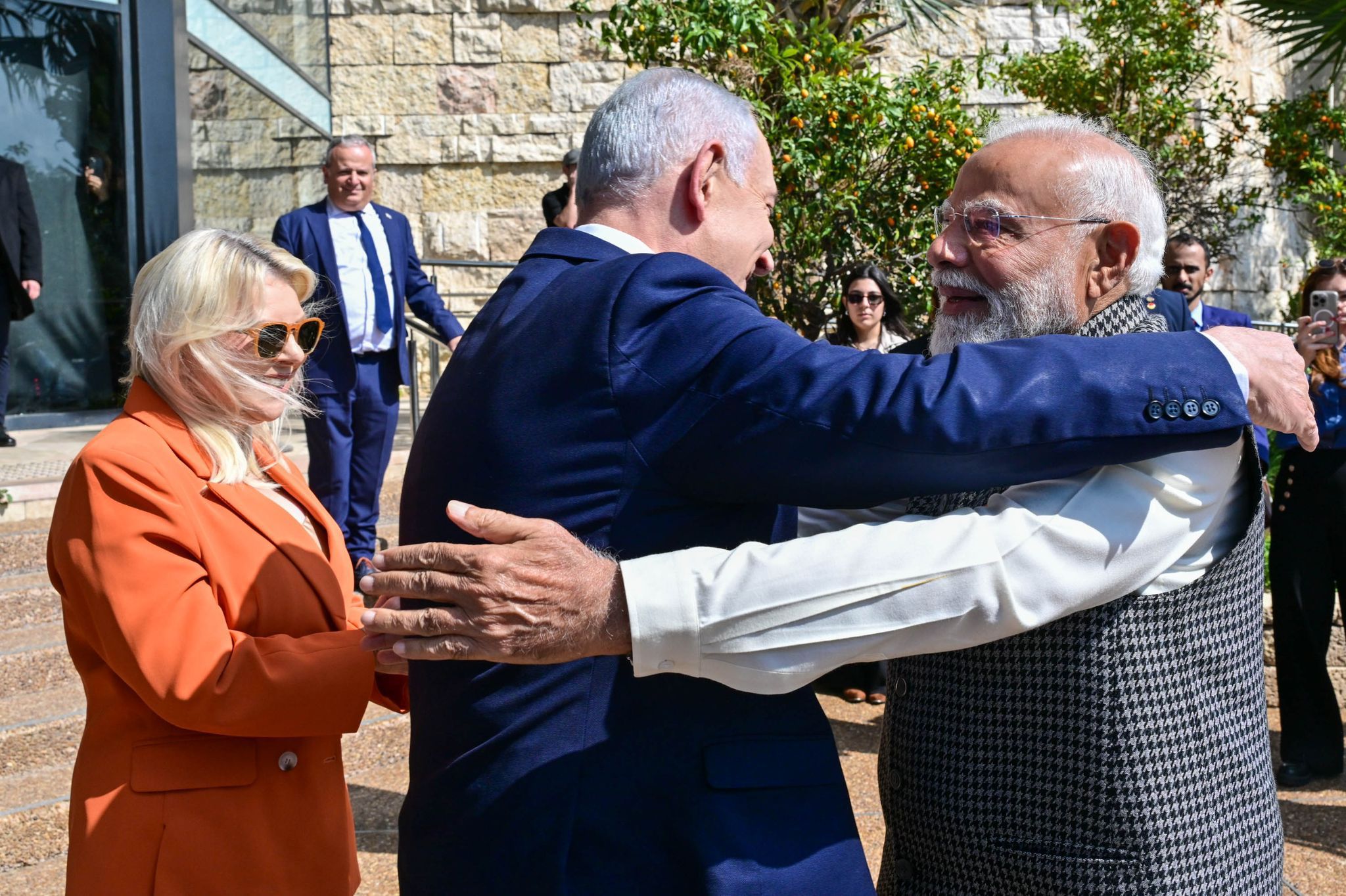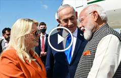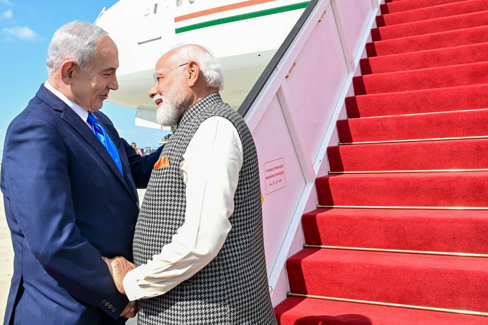 وقد استقبل رئيس الوزراء بنيامين نتنياهو وزوجته سارة نتنياهو رئيس الوزراء الهندي في مطار بن غوريون.