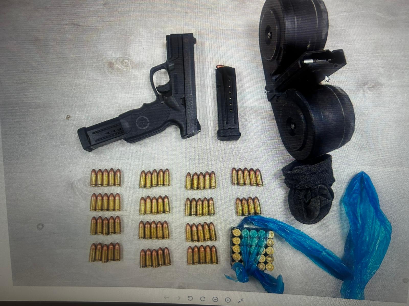 * مسدس من عيار 9 ملم.